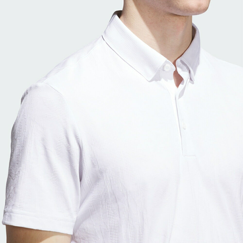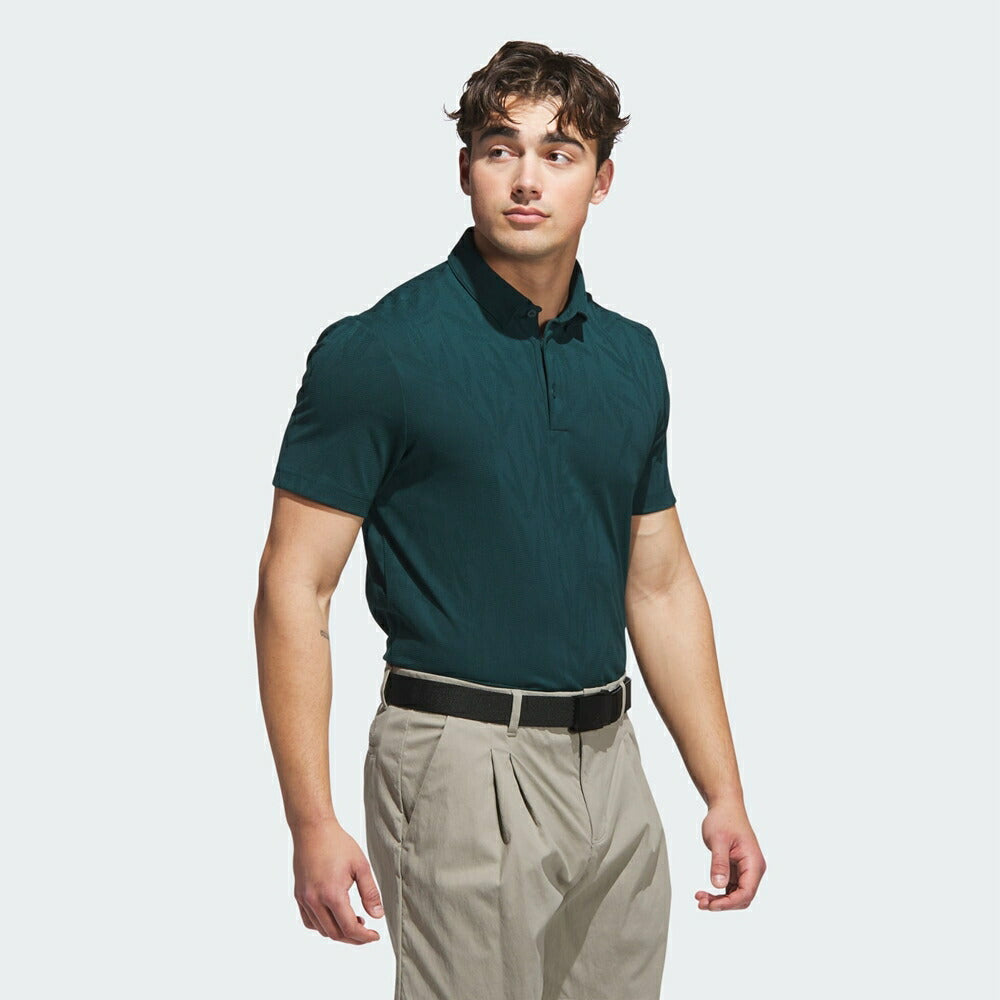 どこでプレーする日でも頼れる、コースでも普段使いでも活躍するadidasのゴルフポロ。控えめな背景プリントがカジュアルな雰囲気を添える。