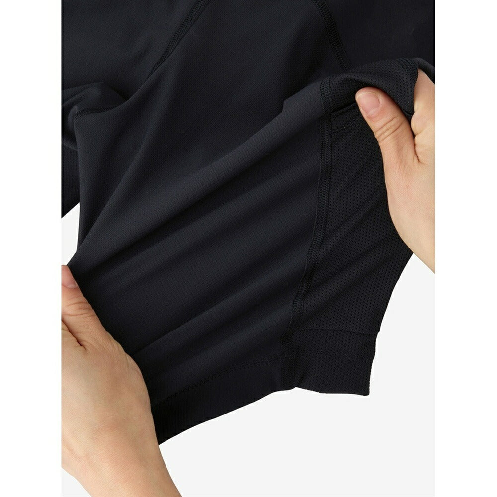 主素材として、通気性のあるドライメッシュ構造の生地を使用しており、発汗時も肌面のべたつきが少ないのが魅力。