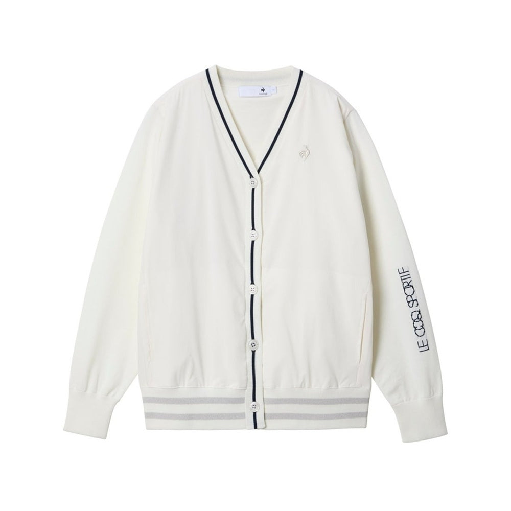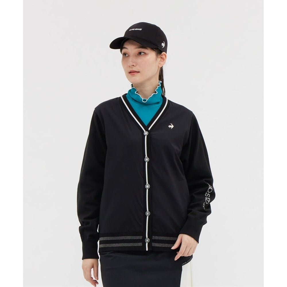 ■上品なカーディガンにスポーティーな配色ラインをデザインした絶妙なバランスが魅力です。