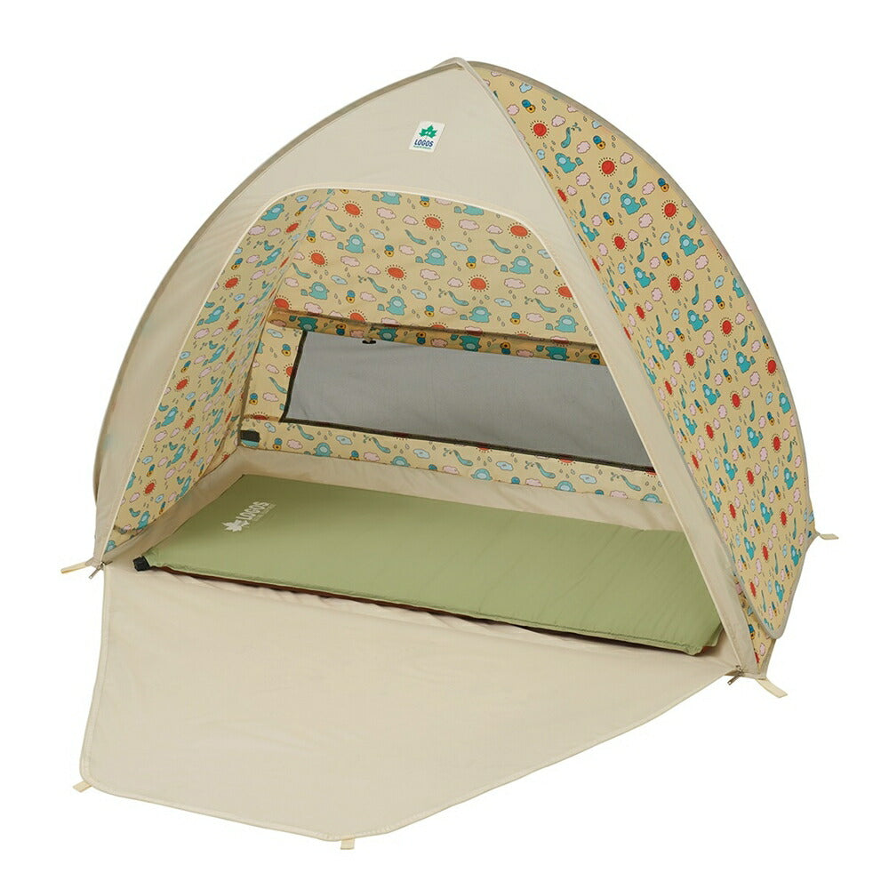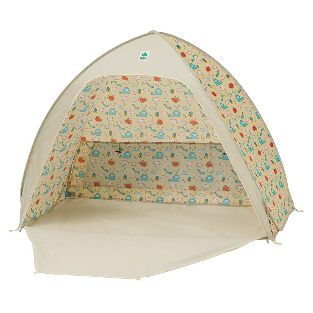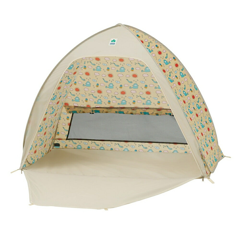 ワクワク感溢れる総柄デザインが魅力のワンタッチテントは、広げるだけで設営が簡単!
