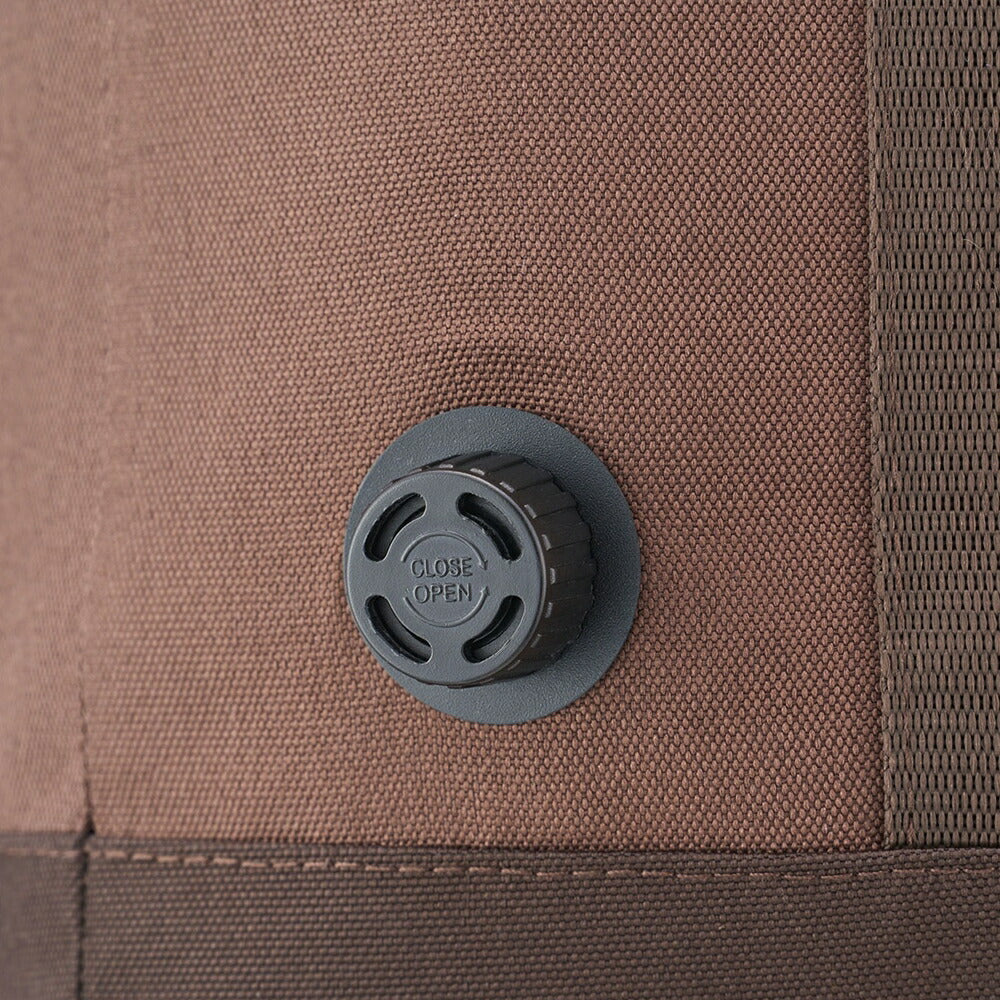 使用後は、バルブを開き、本体を丸めながら空気を抜けばコンパクトに折りたたみ可能。