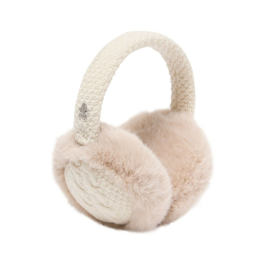 ・毛足の長い女性らしいフェイクファーとニットのコンビのイヤーウォーマー。